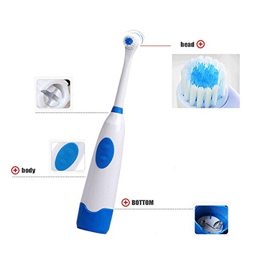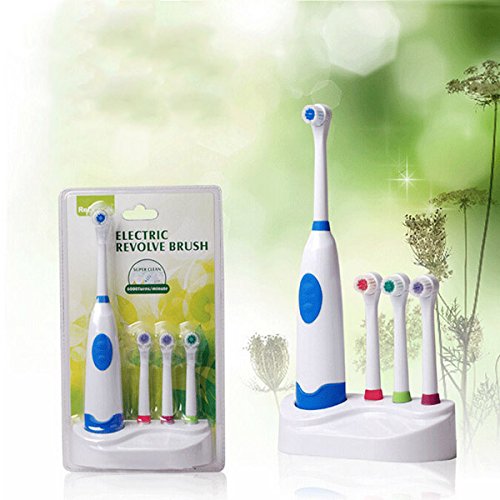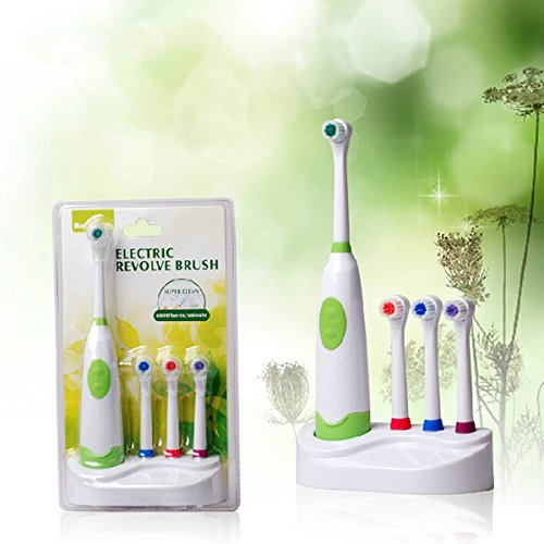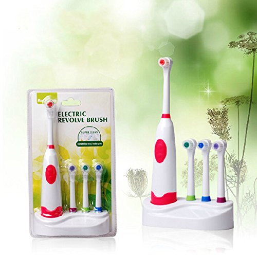 Studio : Thailand Publisher : Thailand Product Description Description: Weight: Aboout 300g Size: About 20cm*3cm Color: Red, Blue, Green, Purple(Randomly color) Power: 2 AA Batteries(Not including battery) Material: ABS Plastic TPR Rubber Brushing Pattern: Electric Rotation Type Feature: 4 colors, as you like For effective plaque and stain removal. Extra-long to reach difficult areas Nearly 8,000 movements per minute Soft brush,Protect the gums from harm Use 2 AA batteries, environmental protection and energy saving Package Included: 1 X Handle 1 X Base Plate 4 X Toothbrush Head Tips: Electric toothbrush is suitable for children over the age of 5. The best time of using rotation type electric toothbrush is about 3 or 5 minutes. To avoid hurting gums, after use 3 months the toothbrush head will wear and deform,suggest change the head of your electric toothbrush at least every two to three months. Notice: 1. Due to the difference between different monitors, the picture may not reflect the actual color of the item. Please consider this before the purchase. 2. Please allow 1-2cm differs due to manual measurement ! 0