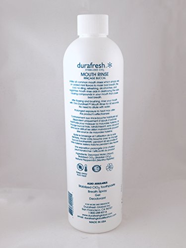 -. Binding : Health and Beauty -. Brand : Durafresh Oral Rinse -. EAN : 0738450009983 -. Feature : Non-toxic unlike widely available commercial products / Does not contain alcohol and is sugar free / Eliminates bad breath or halitosis by penetrating deeply into the gum line / 16 oz of long lasting and pleasant taste / 2 tsp. is all you need after brushing or flossing -. IsAdultProduct : 0 -. Label : Zinnelle Labs Inc. -. Manufacturer : Zinnelle Labs Inc. -. PackageQuantity : 1 -. ProductGroup : Beauty -. ProductTypeName : HEALTH_PERSONAL_CARE -. Publisher : Zinnelle Labs Inc. -. Studio : Zinnelle Labs Inc. -. Title : Durafresh Oral Rinse16oz - The Ultimate in Fresh Breath, Healthy Gums and Better Dental Check-ups! -. UPC : 738450009983