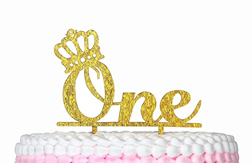 ONE Acrylic Cake Topper , Gold Crown, 1st Birthday Party Supplies