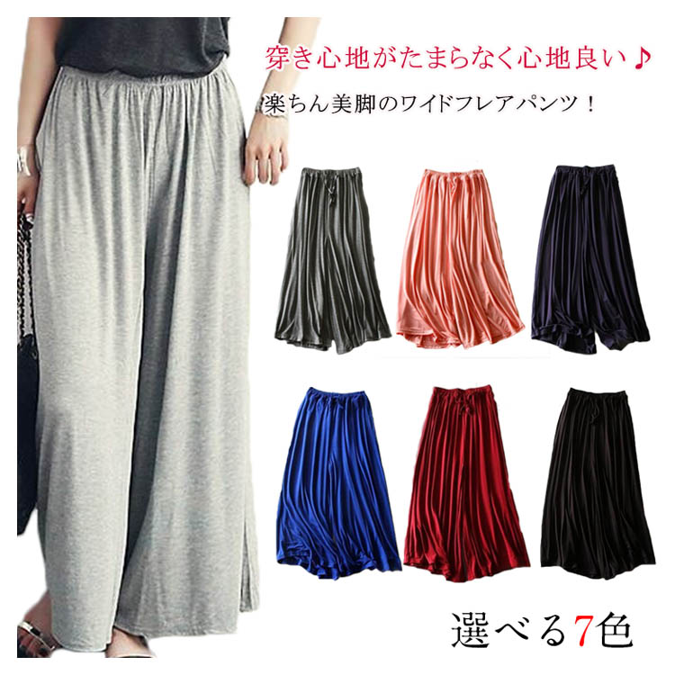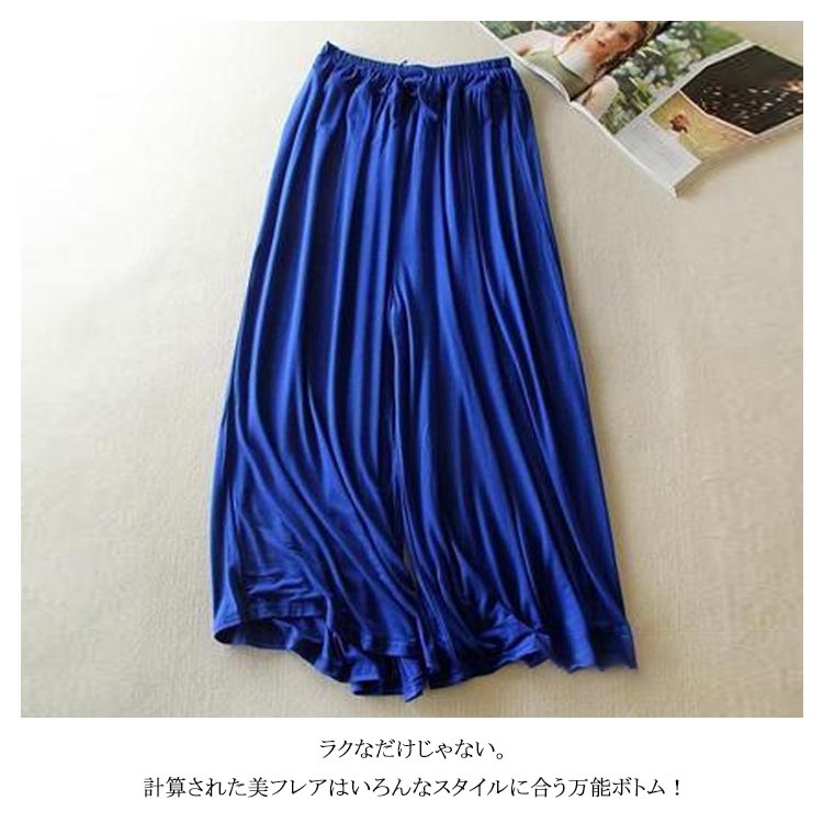 | 穿き心地がたまらなく心地良い♪楽ちん美脚のワイドフレアパンツ!スカートとパンツ2つの良いとこ取りをしたスカーチョデザイン。ラクなだけじゃない。計算された美フレアはいろんなスタイルに合う万能ボトム!計算された美シルエットで作る、大人の美人Style! | |