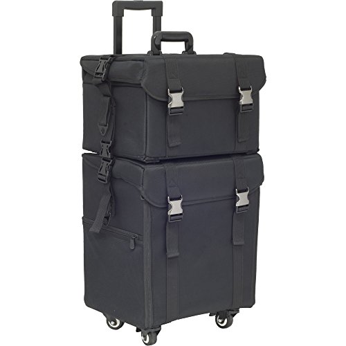 Hiker Formosa 2-In-1 Soft-Sided Rolling Makeup Case Professional Nail Travel Wheel Organizer, Black Canvas, 22 Pound