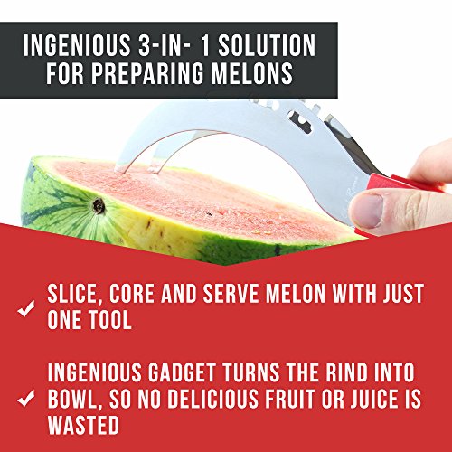 Latest 3-IN-1 Watermelon Slicer Knife - Lifetime Replacement Warranty – Slice, Core and Serve Effortlessly With Our Ultra Sharp Stainless Steel Blades - Best Rated Watermelon Cutter