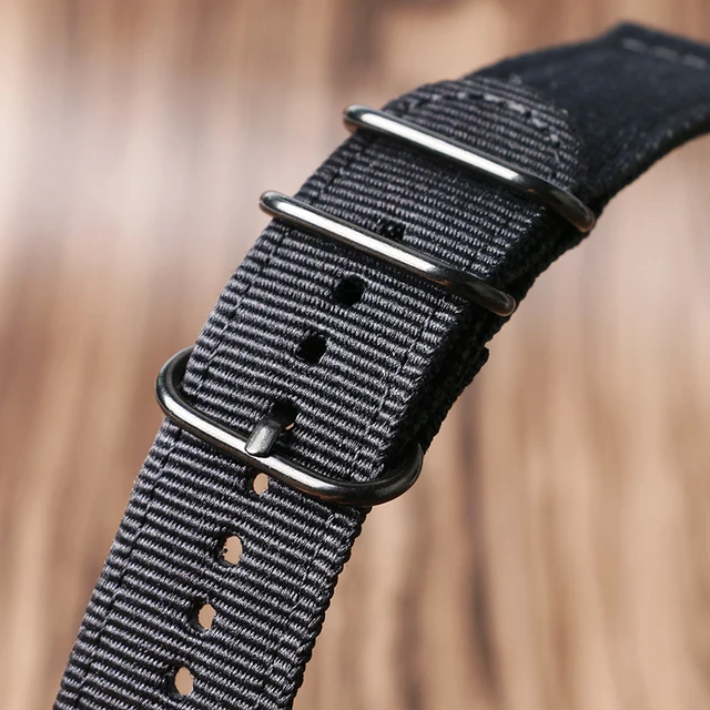 패션 블랙 캔버스 시계 밴드 스트랩 20/22 미리메터 남성 남성 회색 반지 BD0137