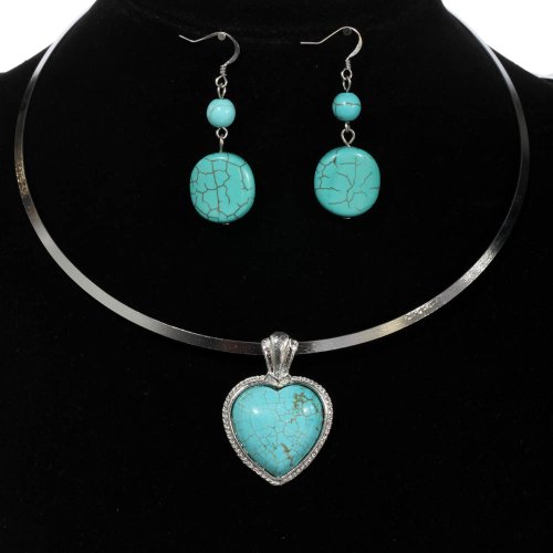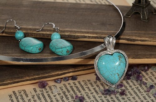 - Title : Yazilind Jewelry Vintage Rimous Turquoise Heart Pendant Collar Necklace Earrings Set Alloy Ethnic Gift Idea