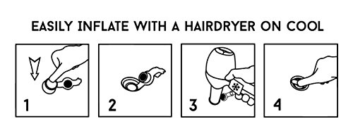 QUICKLY INFLATES; complete with a quick inflate and deflate valve, our special valve allows inflation with pump or hairdryer on cool