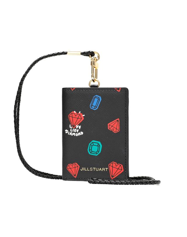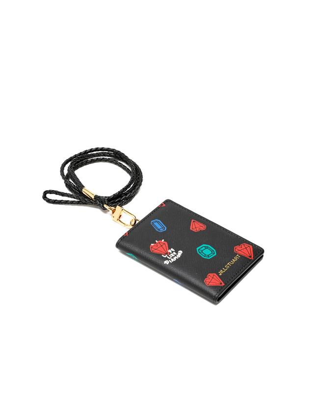 부드러운 소가죽 소재로 JILLSTUART 고유 쁘띠 다이아몬드 프린팅과 금속 로고로 포인트를 준 목걸이형 카드홀더 입니다.