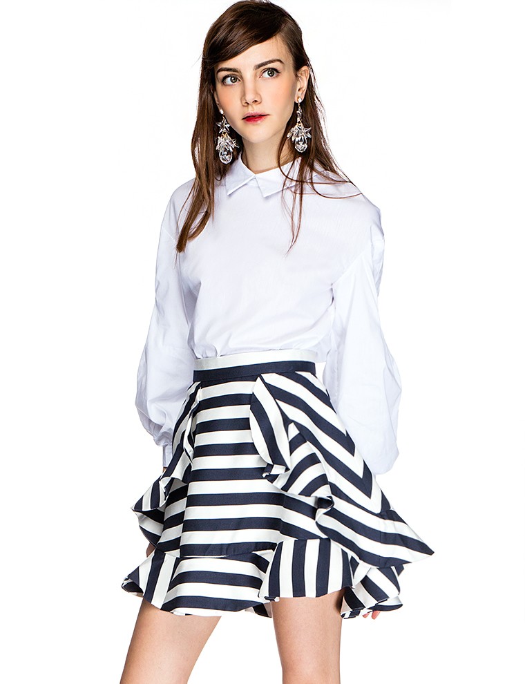 New Spring Summer Chiffon Multi-Flounced Skirts Stylish Elegance Elegant Striped High Waist A-Line Short Women Skirt