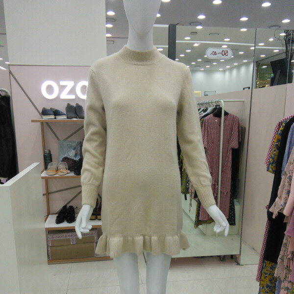 밑단에 작은 프릴을 달아 여성스럽고 귀여운 느낌을 줍니다색상도 부드러운 크림색으로 포근한 니트원피스예요길이도 길지않아 스키니바지에 입으셔도 이쁘고 활용도만점입니다