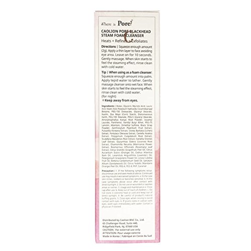 Caolion Pore Blackhead Steam Foam Cleanser - Exfoliates Face and Body, Cleanses Pores with Steaming Effect - 3.38 fl oz.