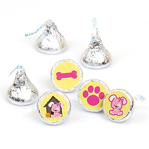 Girl Puppy Dog - Party Round Candy Sticker Favors – Labels Fit Hershey’s Kisses (1 sheet of 108)