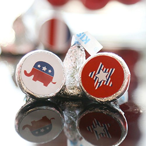Election (R) - Political Party Round Candy Sticker Favors - Labels Fit Hershey‘s Kisses (1 sheet of 108)