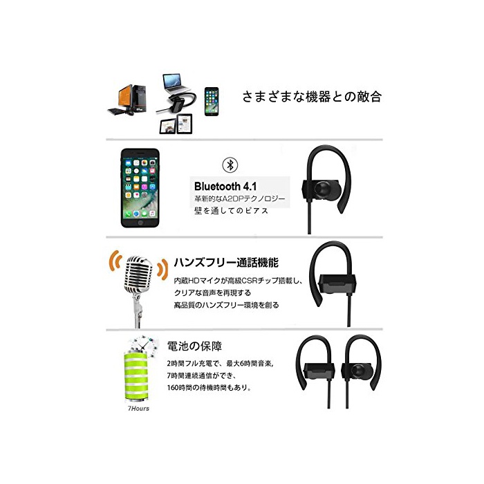 원본상품명: Bluetooth イヤホン 高音質,防汗防滴 スポツ仕 外れにくい Bluetooth ヘッドホン ハンズフリ通話 CVC6.0ノイズキャンセリング ワイヤレス イヤホン [正規品 / 1