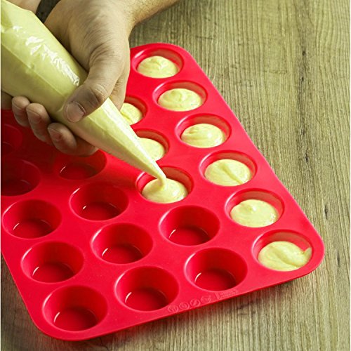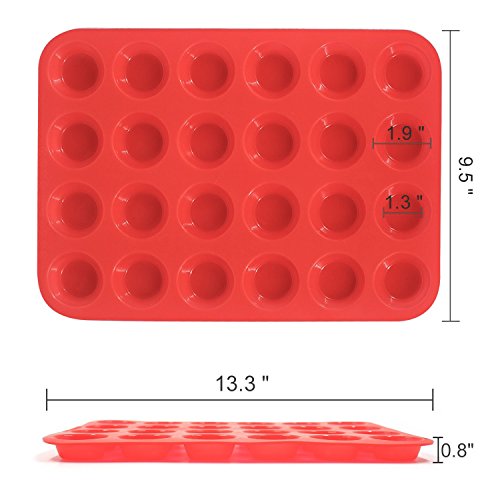 24 Cups Silicone Muffin Pan, JamHoo Premium Mini Cupcakes Trays Baking Pan, Non-stick/ Dishwasher, BPA-free Food Grade Silicon Mold Material, Red