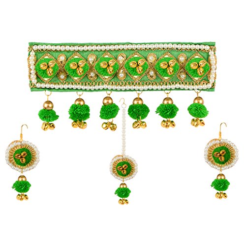 STRIPES Presents Multi Colour Pom Pom And Golden Colour Gotta and Ghungroos With Pearl Handmade Jewellery Set / Necklace set .for Pre Wedding Shoot/Mehndi Ceremony . This Necklace Set is made of Gota Fabric in attractive color and design. This product will surely add traditional look to your attire and a perfect match to wear during festive/wedding season.