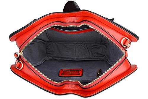 -. Feature : 100% genuine leather / zipper closure;fabric lining; / Exterior features gold hardware. / Interior features large space for storage, 1 open pockets, and 1 zipper pockets. / Size: L11.8"X H7"XW 3"; adjustable backpack 40" straps