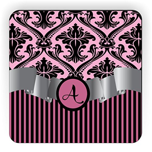 Rikki Knight Letter "A" Initial Light Pink Damask and Stripes Monogrammed Design Square Fridge Magnet