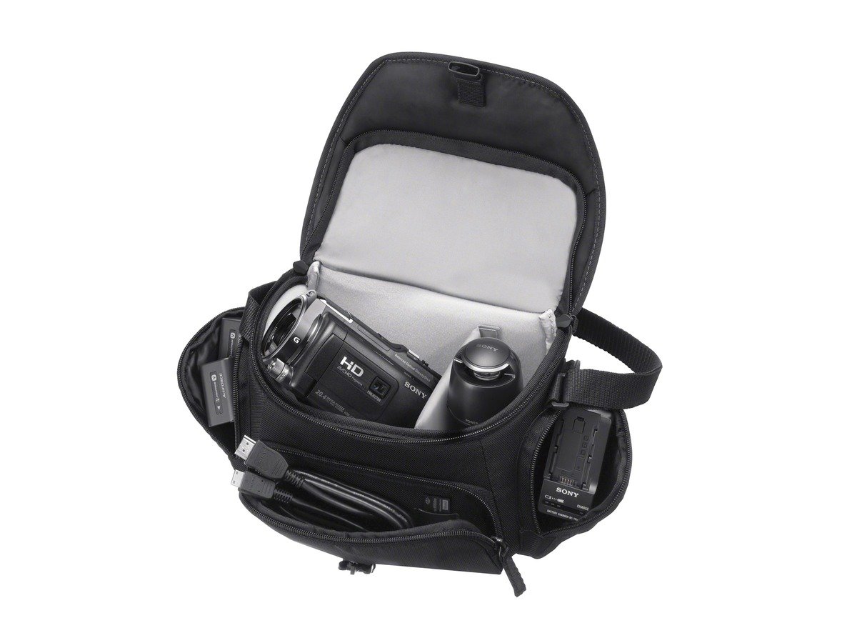 A case where you can easily store accessories such as the body of "Handycam" and batteries and AC adapter.