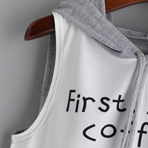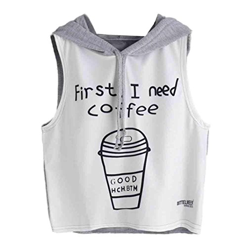 -. Title : SINMA Women "First,I need coffee" Coffee Print Tank Tops Casual Hooded Short Vest