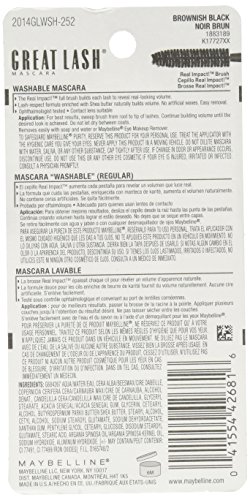 -. Title : Maybelline New York Great Lash Real Impact Washable Mascara, Brownish Black, 0.37 Fluid Ounce