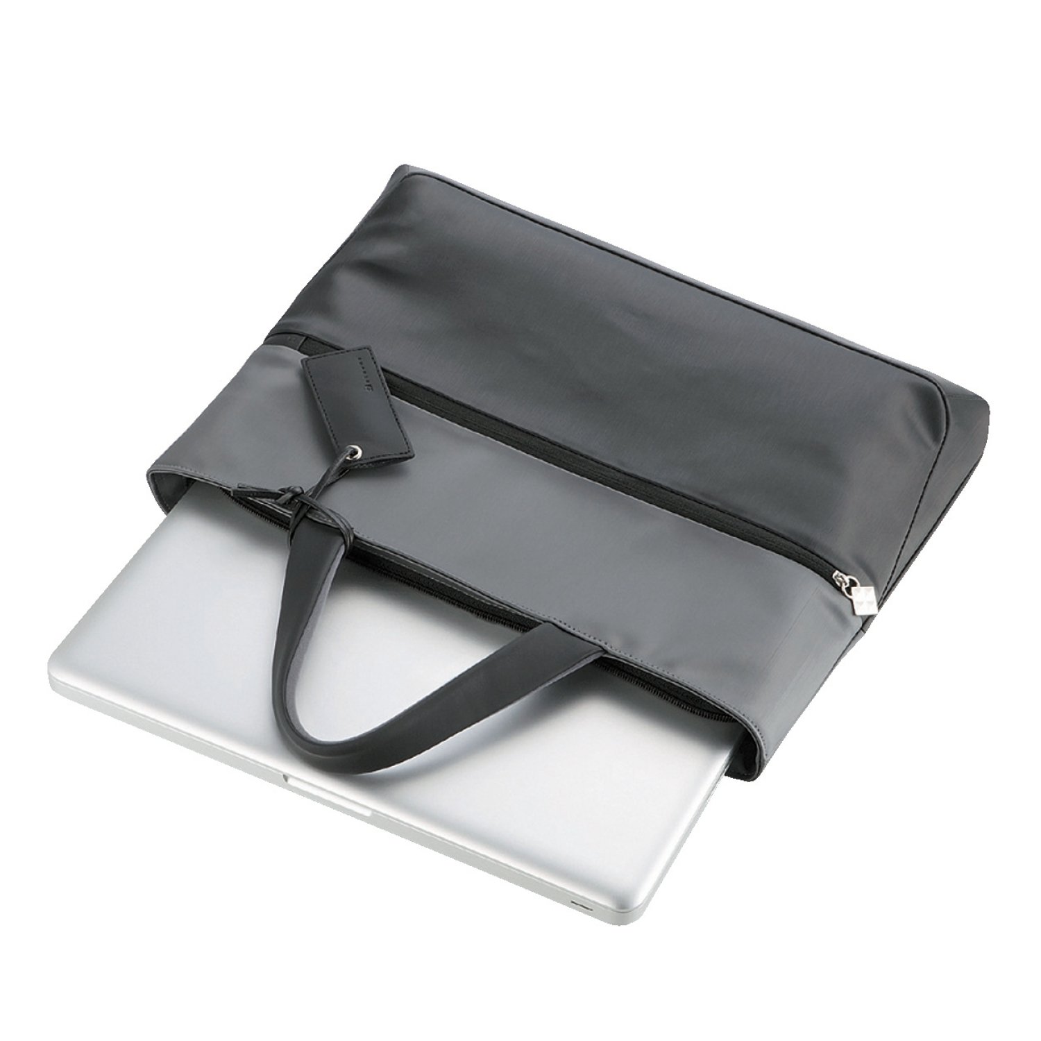 It is a thin type carrying bag that you can see clearly even if you store your PC with a tone based on black that suits your suit style.