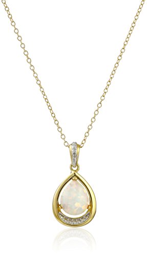 18k Sterling Silver Yellow Gold and Rhodium-Plated Created White Opal and Diamond Teardrop Pendant Necklac