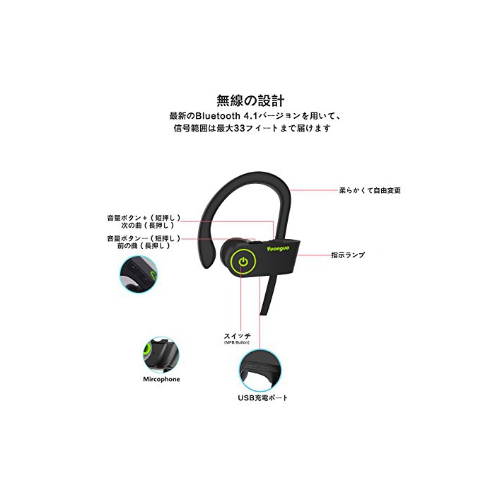 【bluetooth4.1버젼】운동 중으로 블루 tooth의 신호는 안정 적으로 전송 할 수 있는 일이 매우 중요합니다.블루 tooth의 4.1버젼을 탑재하고, 휴대에 연결하고 나서 음악을 듣는 것이라든지 전화를 받는 것이라든지 블루 tooth가 신호를 안정 적으로 전송 할 수 있는 것에,음의 손해는 적어지고 있습니다.예를 운동 중에서도 훌륭한 음질을 향수에 옵니다.