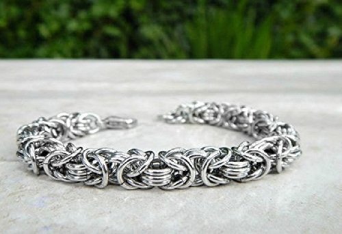 -. Title : 1 Stainless Steel Chainmail Bracelet, perfect for 11th Anniversary Gift for Wife; Handmade Bracelet, Byzantine Chain Maille Weave, Renaissance Jewelry