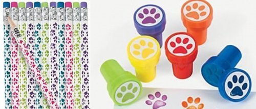 -. Feature : 12 pc BRIGHT P.R.Int paw pencils in assorted colors / 12 pc paw stampers assorted colors / paw party pack