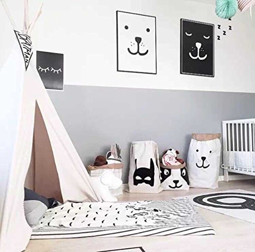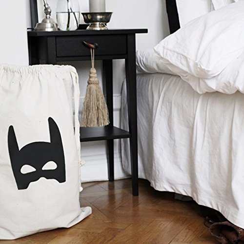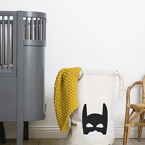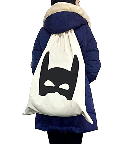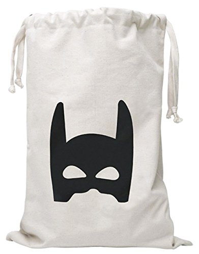 Outdoorfly Canvas Drawstring Laundry Storage Bags Nursery Clothes Books Kids Toys Organizer Travel Backpack Pouches Space Saver Home Storage Bags for Gilr Boy (Mask,Oversized 18" x 26")
