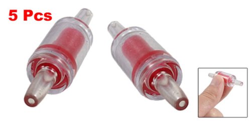 -. Feature : Product Name : Check Valve;Use for : Fish Tank, Aquarium / Air Hole Diameter : 1.8mm/ 0.07";Overall Size : 5.3 x 1.5cm/ 2.1" x 0.58"(L*Max.D) / Material : Plastic;Color : Clear, Red / Net Weight : 19g / Package Content : 5 Pcs x Aquarium Check Valve
