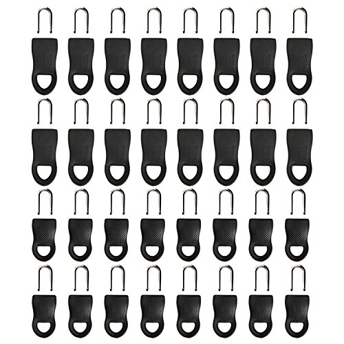 eBoot 32 Pieces Zipper Tag Zip Fixer Zipper Replacement Tag for Clothes or Bags, Black