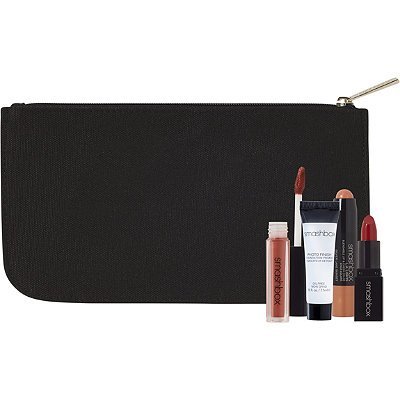5 Piece Set includes: Photofinish Foundation Primer sample (0.25 oz) L.A. Lights Blendable Lip and Check Color sample (0.03 oz) Always On Matte Liquid Lipstick in Driver's Seat sample Be Legendary Cream Lipstick in Legendary sample Cosmetic Black in Black (8.5" W x 4.75" H x 0.5" D)