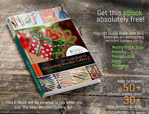 FREE DIY DECORATING TUTORIALS! Enjoy a Free EBOOK containing DIY tutorials on decorating wooden cutlery by painting, dying, washi tape and stamping. Ebook also contains more than 50 different style ideas plus more than 30 table decorating ideas using wood utensils to make your occasion even more special. AMAZING!
