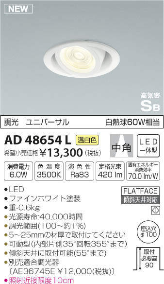 ●別売適合調光器〔AE36745E \12,000(税抜)〕