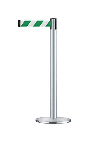 Tensabarrier 889U-1S-1S-STD-NO-D2X-C Satin Chrome Post, 2" Wide, 7' 6" Length "Chevron Green & White" Belt, 90" Length, Steel