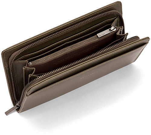 INTERIOR: 12 card slots, 4 bill compartments, interior divider and zipper pocket.