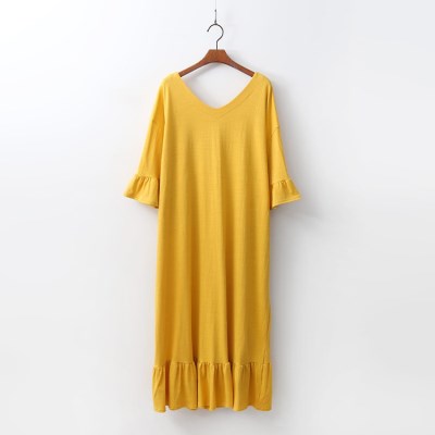우아하게 흐르는 롱 기장감에 밑단 프릴 디테일로 여성스러운 무드.