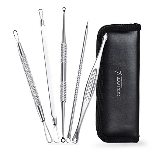 Blackhead Remover Kit, Oak Leaf Professional Dermatologist Grade 5 Pieces Comedone Extractor Tool Set for Treating Blackhead, Whitehead, Facial Acne