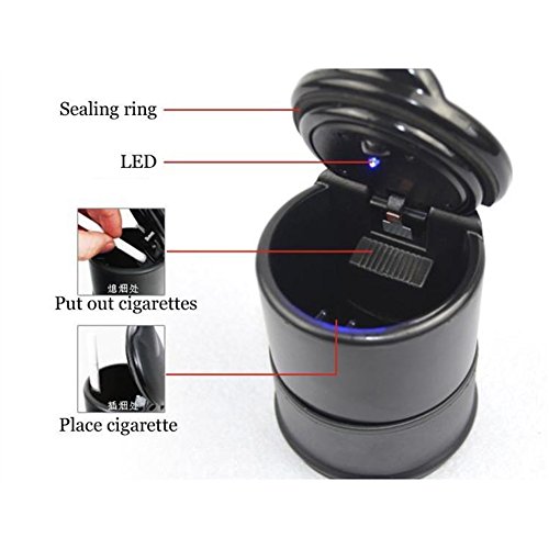 -. Binding : Kitchen -. Brand : JINBEST -. Color : Black -. EAN : 0765018288887 -. Feature : Material: High flame retardant PBT material ( With LED Lamp, and a CR2016 button battery ) / Weight:200g Fit Most Car Cup Holder / It also can be used as a handy coin/change holder or small stuff trash can / Wrapped with classy shell, keep your vehicle or room away from smelling like an ashtray / Ideal for office, home and car use,equipped with snuffer hole and self-cleaning design. -. IsAutographed : 0 -. Label : JINBEST -. Manufacturer : JINBEST -. Model : SA33MM48 -. MPN : SA33MM48 -. PartNumber : SA33MM48 -. ProductGroup : Home -. ProductTypeName : HOME -. Publisher : JINBEST -. Studio : JINBEST -. Title : Portable Car Cigarette Ashtray Smokeless for Most Car Cup Holder (Black with Blue LED Light) -. UPC : 765018288887