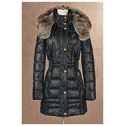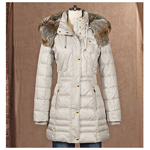 High fashion meets high functionHigh-shine poly shell resists wind and moistureElasticized waist detail accentuates curvesDetachable hood is fully lined in soft faux furApprox. 33" lengthQuilted lining with polyfill insulationMachine washImportFeature
