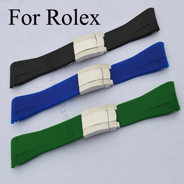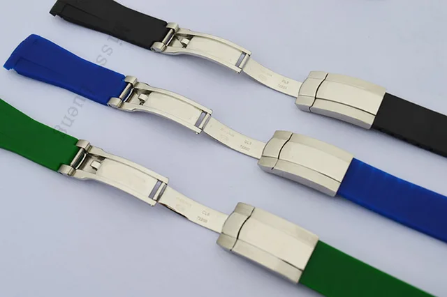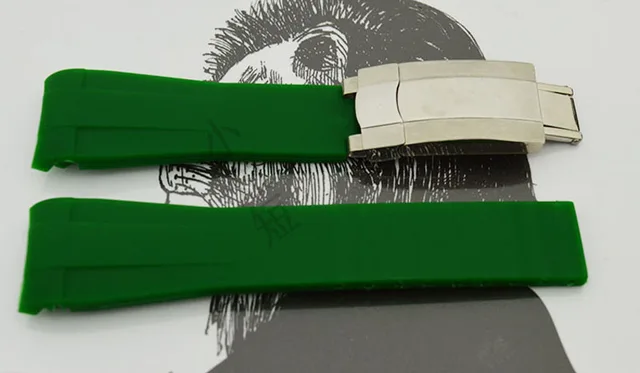 | [해외]럭셔리 브랜드 20 미리메터 망 다이버 실리콘 고무 시계 스트랩 젖빛 배포 걸쇠 로고, 고무 손목 시계 rolwatch |