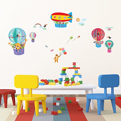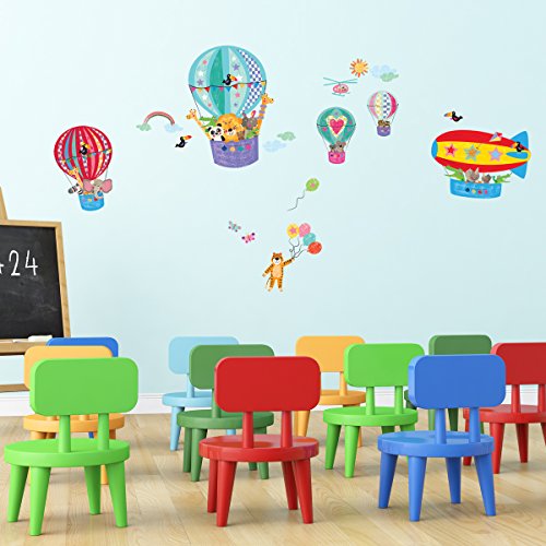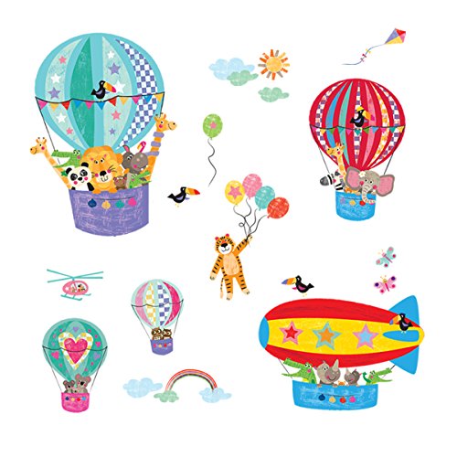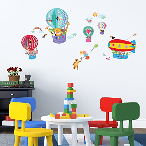Decowall DA-1610B Animals in Hot Air Balloons Kids Wall Decals Wall Stickers Peel and Stick Removable Wall Stickers for Kids Nursery Bedroom Living Room