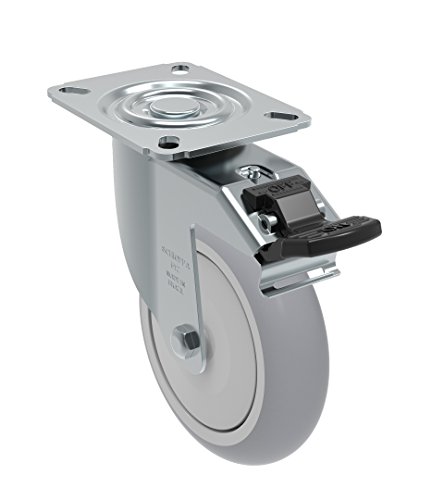 Schioppa GL 512 SPE G L12 Series 5" x 1-1/4" Diameter Swivel Caster with Total Lock Brake, Non-Marking Extra Soft Thermoplastic Rubber Precision Ball Bearing Wheel, Plate 3-1/8" x 4-1/8" (Bolt Holes 3-1/8" x 2-1/4"), 250 lb