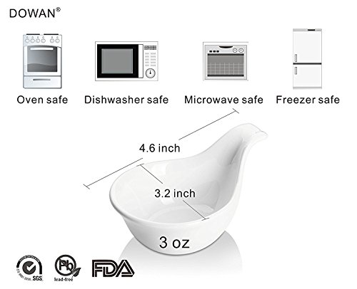DOWAN Irregular-shape Dipping Dish Irregular shaped dipping dish with funny and functional grip handle, do you ever imagine dipping can be so fun so easy? Diameter(handle included): 4.6-inch Diameter(handle excluded): 3.2-inch From DOWAN, America's Home Livingware Brand, Leading Manufacturer of Cost-effective Porcelain Ware Approved by FDA, SGS, Global Quality Inspection Standards for Ceramic Items Recommended by Millions of Kitchen Lovers, Native American Design Compact Size, Highly Versatile ? Easy to grip and move, just pick up by holding its handle and take it to any place you like; ? Stackable for easy storage, stack all of them in a pile, never take too much space in cupboard or cabinet, functional even to small kitchen; ? Stain-resistant and odor-resistant, tomato dipping sauce or garlic sauce, it is easy to wash up like new. Multi-functional - Not Just for Dipping ? Your stylish summer ice cream bowl: summer is coming, you should never miss this 2017 popular and new design bowl for your favorite ice cream; ? Your new favorite ramekin: bored with pure round ramekins? Take this home, you will get new inspiration for your next creation. Easy Use: Microwave, oven and dishwasher safe; Easy to wash by hands or dishwasher. 30-Day Break-and-Chip Warranty: DOWAN is committed to providing customers a reliable shopping environment. Our 30-day break-and-chip warranty covers every piece of item we sell. You can easily reach us by directly replying our after-sales service letter (usually sent after you placed an order) if there emerges a product problem or if you're dissatisfied with the product. We promise we will take immediate and feasible actions to address the problem to your satisfaction. Add to Cart NOW! Enjoy Every Moment of Dipping! 0 |