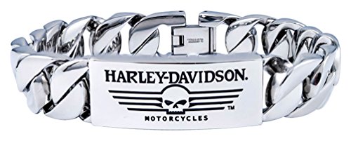 Product Description Harley-Davidson® Men's Willie G Skull Steel ID Curb Link Bracelet, HSB0140. Features a famous straight Willie G Skull ID. Unique linking chain and curved ID. Made of shiny, long lasting stainless steel. Hand crafted with the highest attention to detail and quality. HSB0140 0