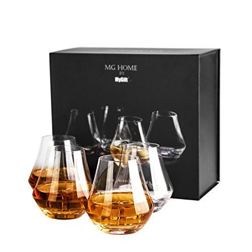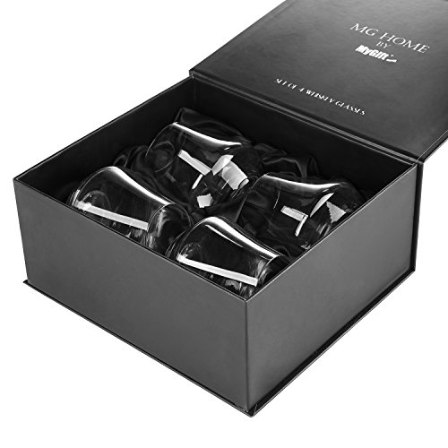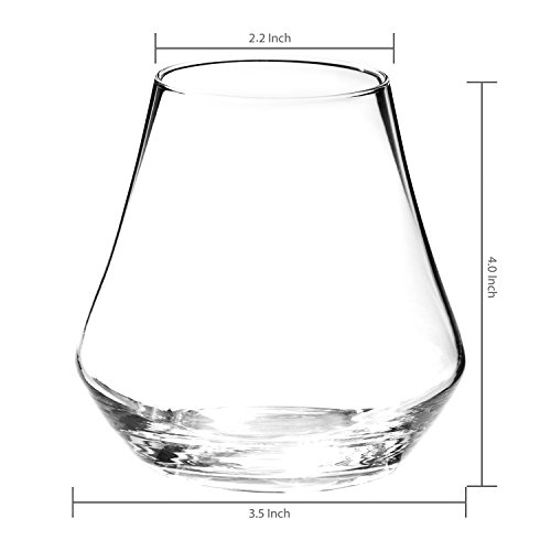 Studio : MyGift Publisher : MyGift Product Description Keep your drinks classy with this set of 4 crystal whiskey glasses. The unique tulip shape of these snifter whiskey glasses allow you to savor each pour of whiskey. The wide-base lets you swirl and add oxygen to your drink, further enhancing the taste and smell of each sip of whiskey. Each glass features a clear crystal construct adding another element of class and sophistication to your whiskey taster glass. These glasses a perfect addition to your drinkware at home, in a restaurant or for entertaining. So go ahead and enjoy your whiskey neat, on the rocks or in a cocktail with this set of four classic whiskey glasses. **Official MyGift® product** Does not include Whiskey, Bourbon or Scotch. Approximate Dimensions (in inches): Each Glass - 4.0 H X 3.5 Diameter. 0 |