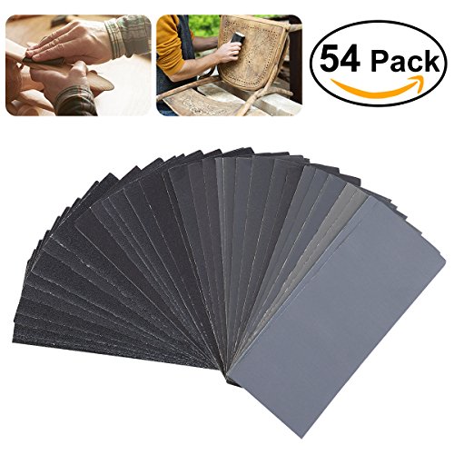 UEETEK 54pcs 60 to 3000 Grit Sandpaper Assortment Wet Dry Sand Paper for Automotive Sanding Wood