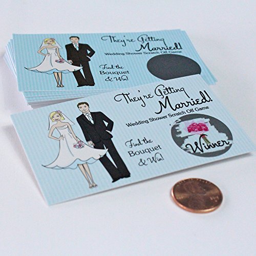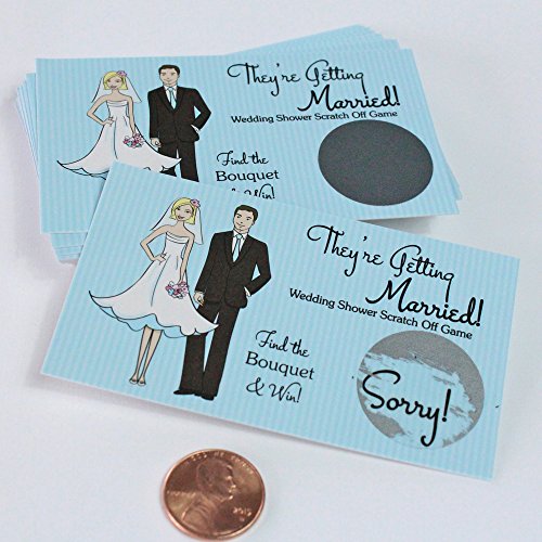 Funny Couples Wedding Bridal Shower Scratch Off Game Card | Happy Couple Blue Pinstriped Card Set 25 (24 Sorry 1 Winner)