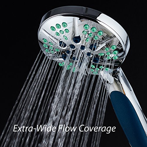 NOTILUS Antimicrobial High-Pressure Luxury Spa Hand Shower - 6 settings, 2-zone Antimicrobial Anti-Clog Nozzles, Antimicrobial Anti-Slip Grip, Metal Fittings, Stainless Steel Hose / All-Chrome Finish