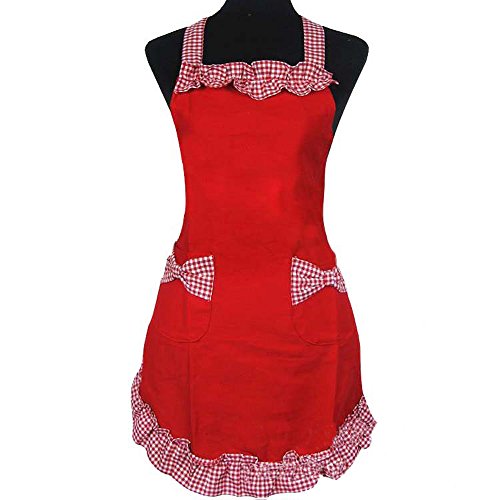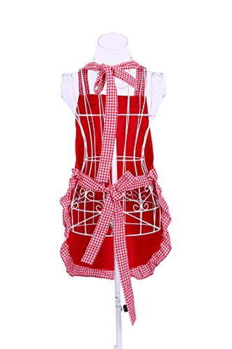 Aprons For Women Plus Size,Retro Vintage Women Cute Apron 100% Organic Cotton Extra-long Tie Kitchen Apron for Baking Cooking Gardening Apron Dress Christmas (Red)